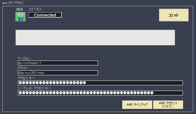 aws S3サービスへ収録したファイルを自動アップロードする画面です。