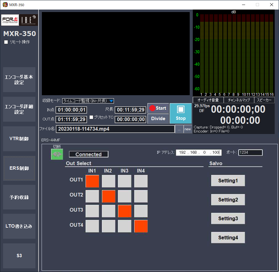 朋栄製ビデオルータMFRシリーズの信号切替え制御が可能